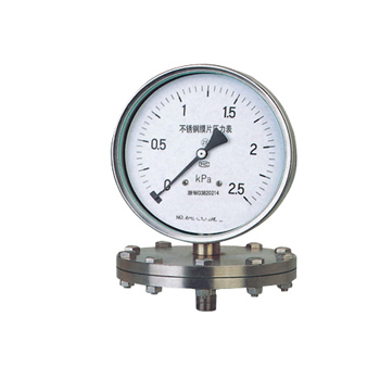 YPF-100/150膜片壓力表適用于測(cè)量具有一定腐蝕性、非凝固或非結(jié)晶的各種流體介質(zhì)的壓力或負(fù)壓。膜片壓力表耐腐蝕性能取決于膜片材料。